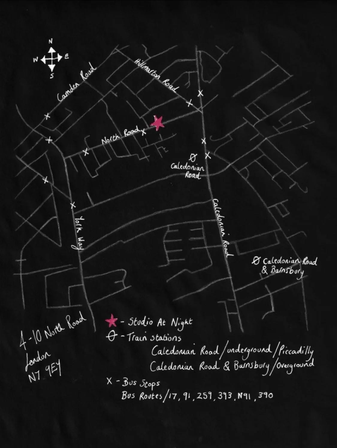 Our closest station is Caledonia Road, less than a five minute walk to the studio.
